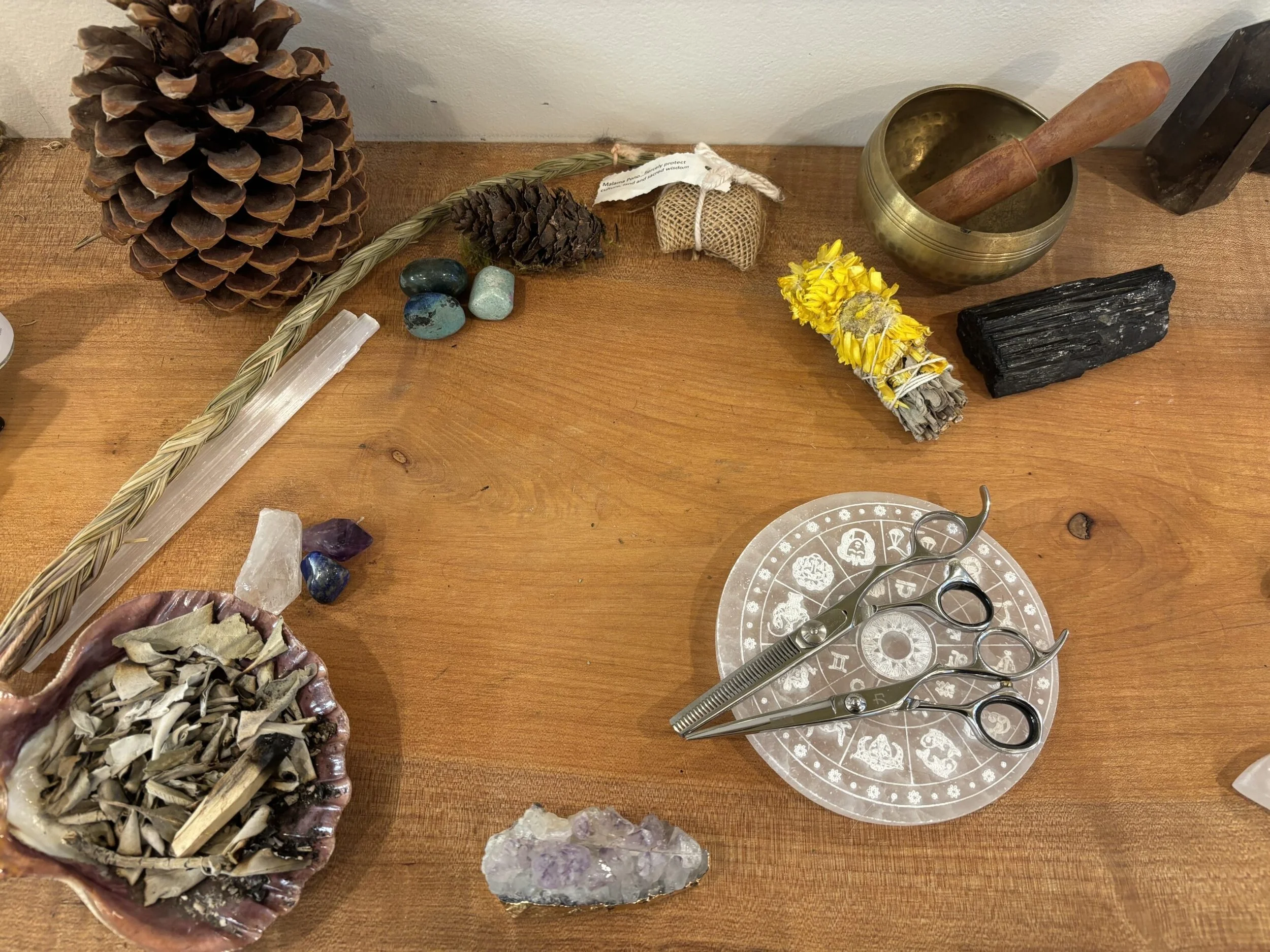 Go beyond a traditional haircut with a sacred one-on-one experience crafted to address your hair, scalp, and spiritual needs holistically. Combining beauty rituals, guided mindfulness, and energy healing, we work to cleanse your aura, shift patterns and belief systems that no longer serve you, and clear your energy body.